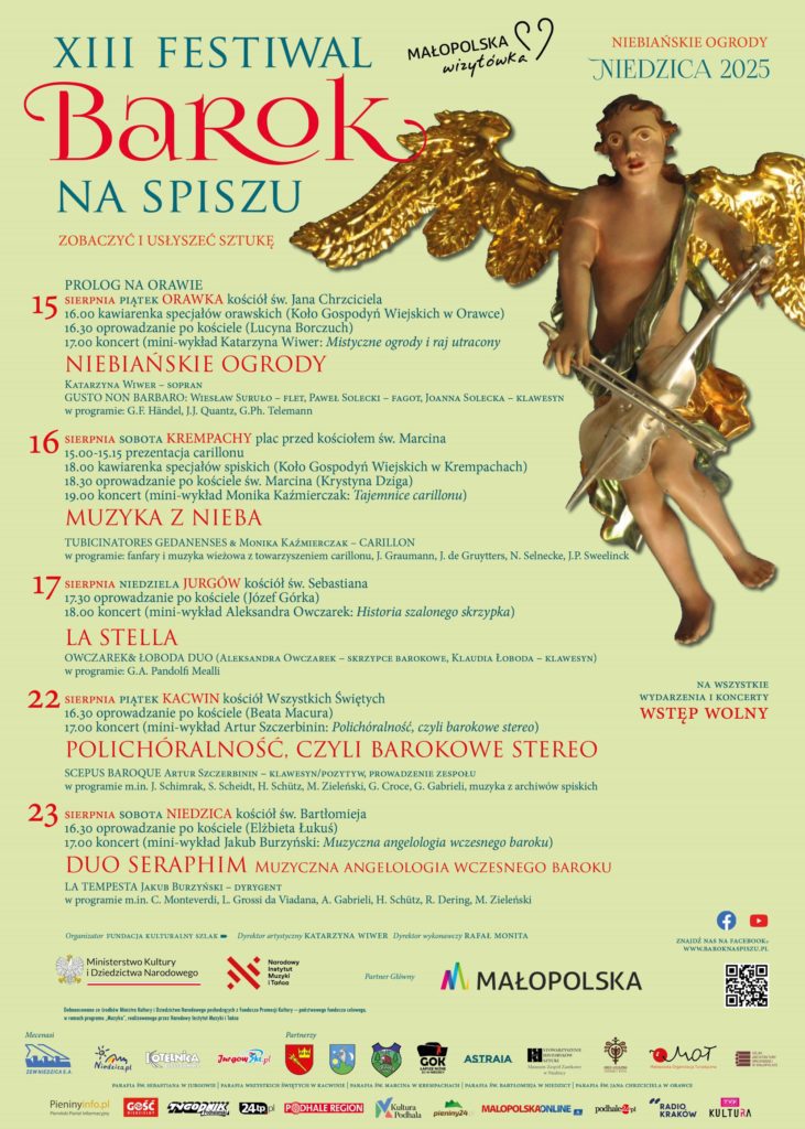 Wczoraj, 15 sierpnia wystartowała XIII edycja festiwalu muzyki dawnej „Barok na Spiszu”. W tym roku motywem przewodnim są „Niebiańskie Ogrody”, a organizatorzy przygotowali program pełen kolorów, duchowych uniesień i niezapomnianych muzycznych doznań.