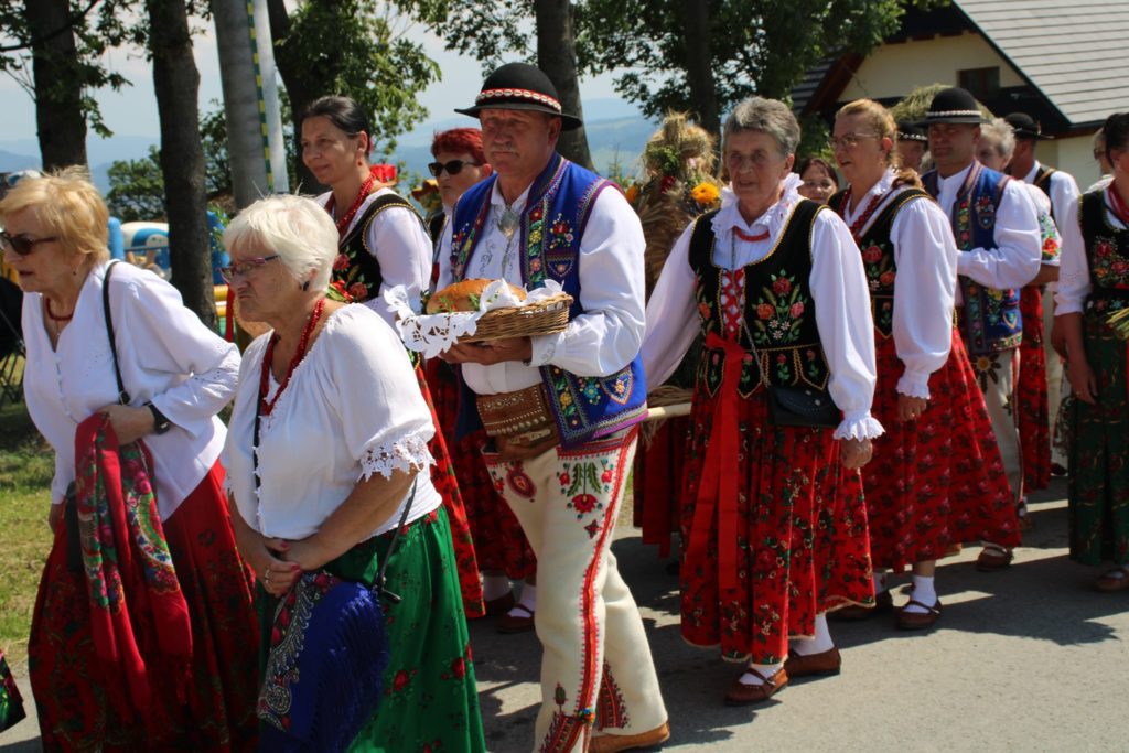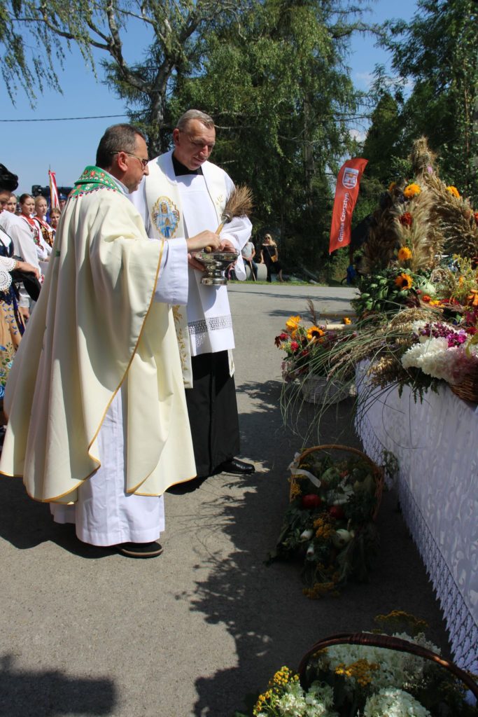 Po dotarciu na główne miejsce wydarzenia odprawiona została polowa msza święta, podczas której przypomniano, że choć czasy się zmieniają i uprawa zbóż nie jest już tak powszechna, to wciąż powinniśmy dziękować za wszystkie plony – warzywa, owoce, kwiaty i inne dary ziemi. Następnie pobłogosławiono przyniesione wieńce oraz chleb. Msza miała piękną góralską oprawę muzyczną.