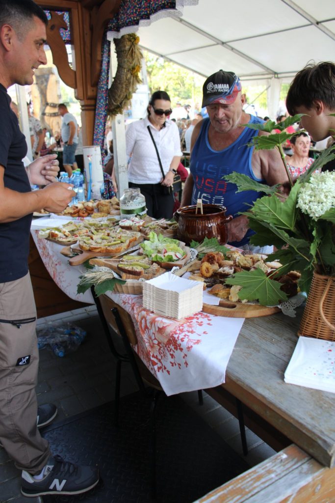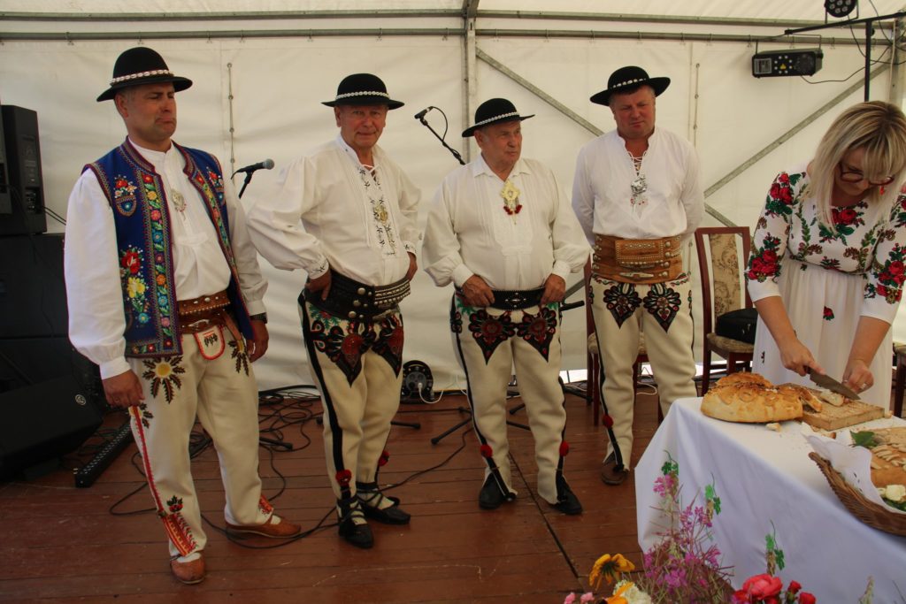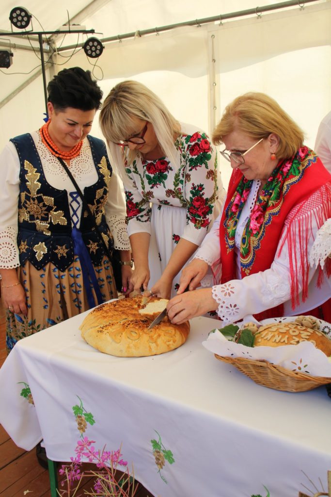 Po nabożeństwie rozpoczęło się dzielenie dożynkowego chleba przez przedstawicieli lokalnych władz i lokalnych stowarzyszeń. Pokrojony chleb sołtysi szybko rozdali zgromadzonej publiczności.
