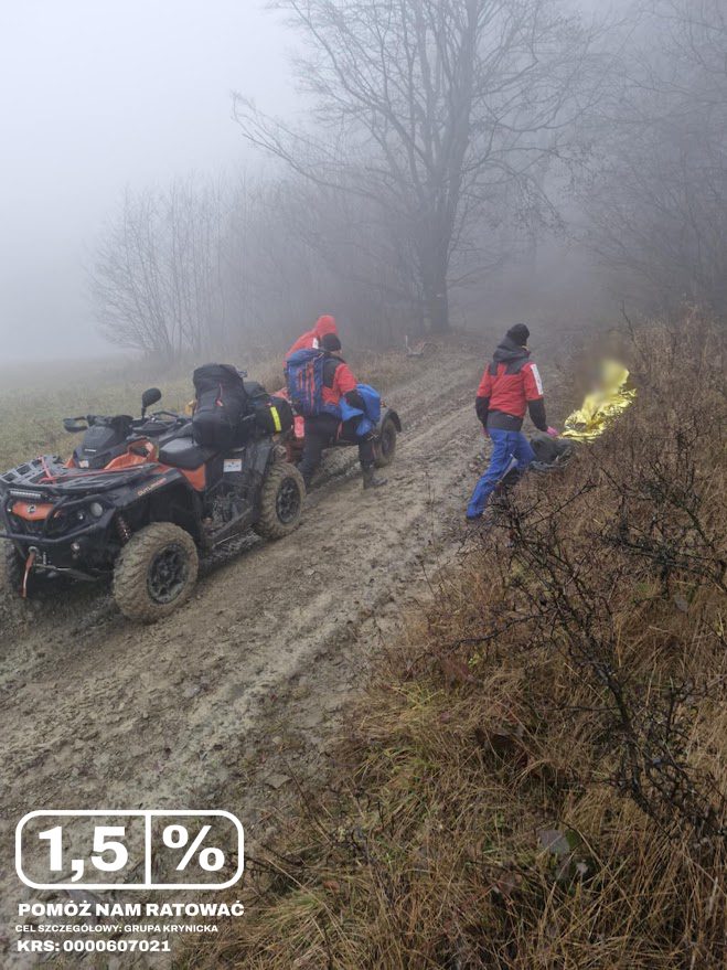 Po udzieleniu pierwszej pomocy i wstępnym ogrzaniu został przetransportowany quadem, a następnie samochodem terenowym do karetki pogotowia oczekującej w Wysowej.