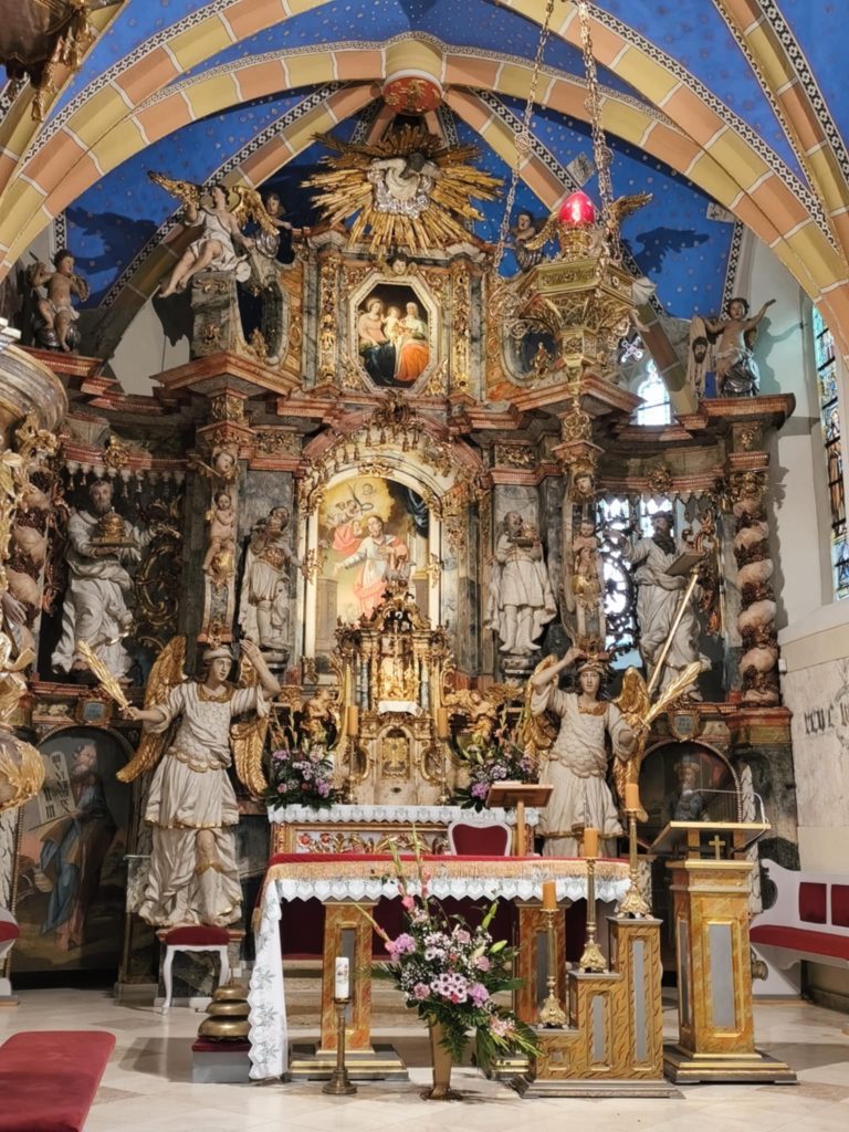 Over the centuries, the church’s interior underwent many renovations. The most important reconstruction took place in the 18th century, when the church received its rich late Baroque decor. Today, the Gothic structure harmoniously blends with the opulent Baroque interior, creating a unique sacred space.