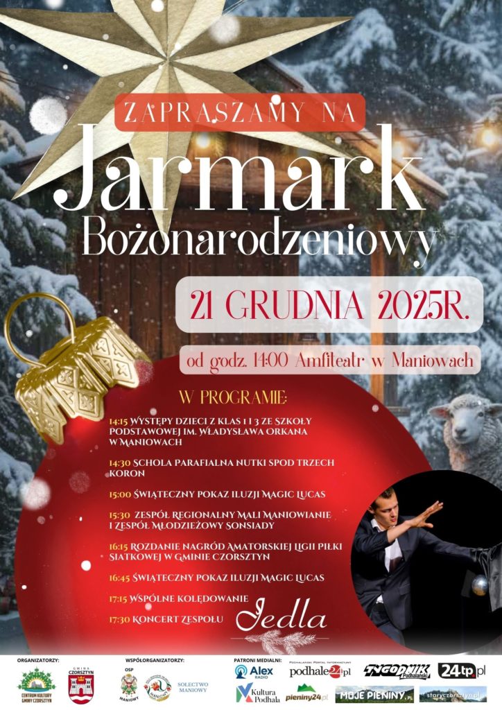 Podczas jarmarku zaplanowano także uroczyste rozdanie nagród Amatorskiej Ligi Piłki Siatkowej w Gminie Czorsztyn. Nie zabraknie wspólnego kolędowania, które od lat stanowi jeden z najbardziej wzruszających momentów wydarzenia. Całość zwieńczy koncert zespołu Jedla, znanego z energetycznych występów i muzyki inspirowanej tradycją.
