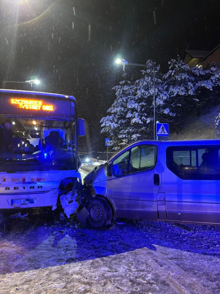 Dzisiaj, 7 stycznia 2026 roku o godzinie 18:18 doszło do kolizji autokaru z busem na ulicy Głównej w Szczawnicy. Na miejsce zdarzenia zadysponowano zastępy OSP Szczawnica – GBA Renault oraz GBART Mercedes.