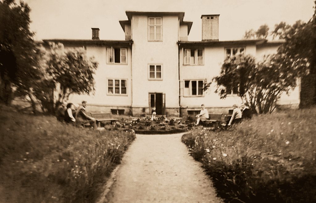 Na kolejnym zdjęciu w głębi na ławce przed okazałym budynkiem Basi I siedzi Zosia Basta, wówczas Sułkowska. Dziś te obrazy są nie tylko pamiątką, ale także mostem do przeszłości i nadzieją na odnalezienie dawnych znajomych.